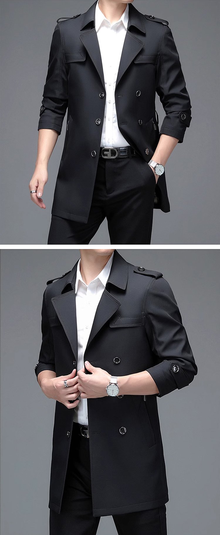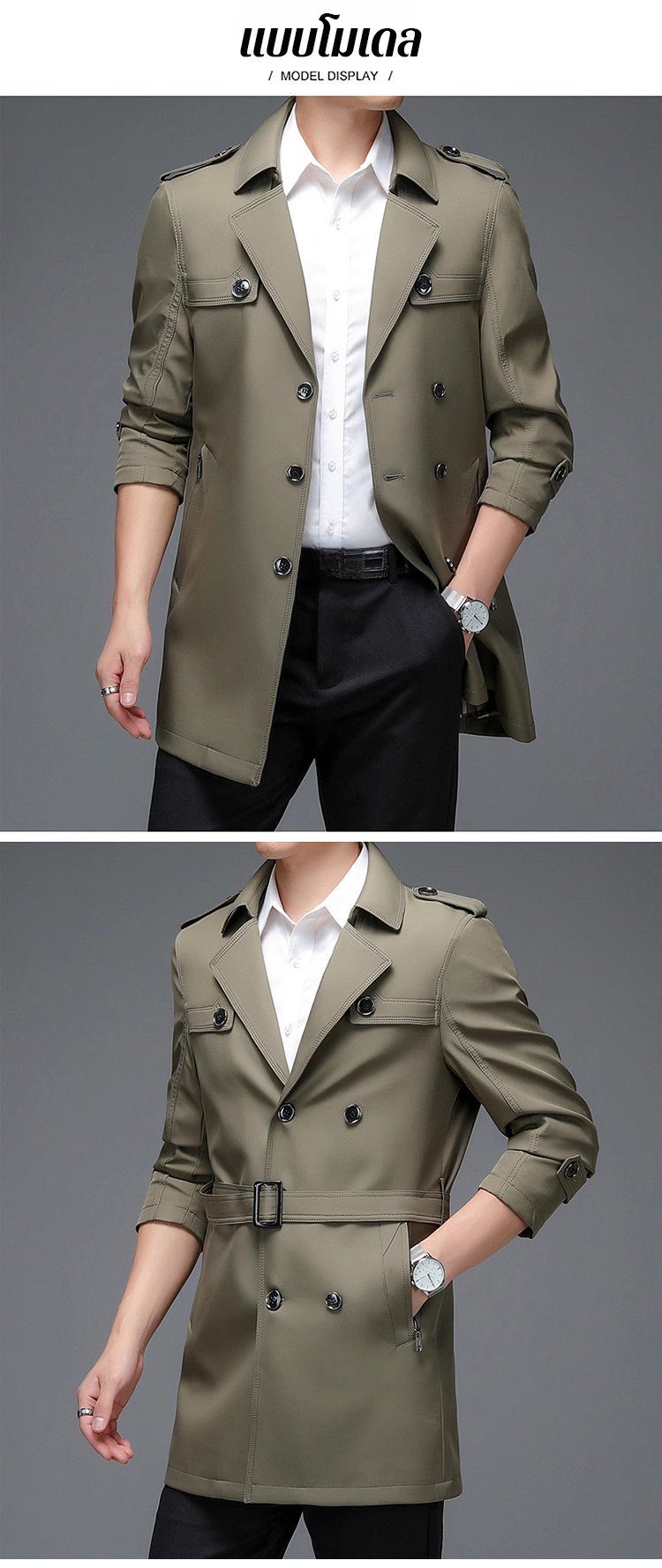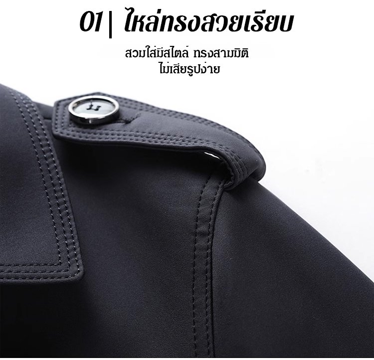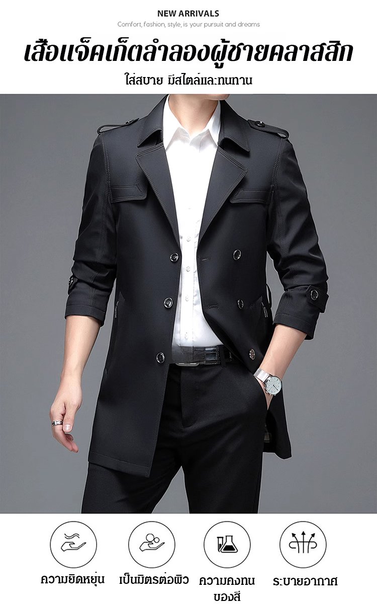 เสื้อแจ็คเก็ตคลาสสิกรุ่นยาวกลางของผู้ชาย
